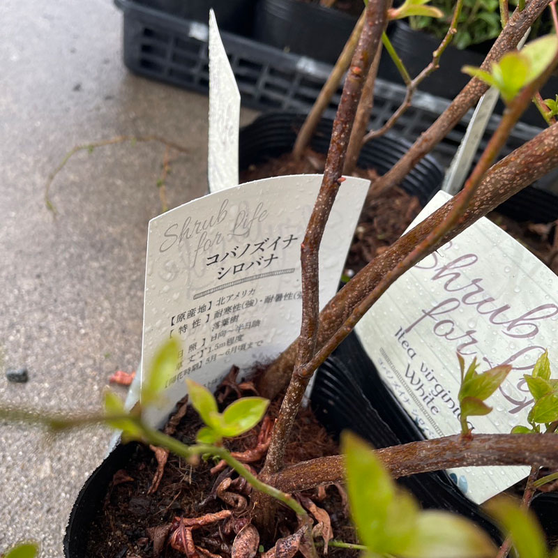 コバノズイナは、初夏に白く可憐な総状花(そくじょうか)が咲き、秋には真っ赤な紅葉を見せてくれる落葉低木です。葉は細長く、株全体がややしだれるような柔らかい印象を持ち、ナチュラルガーデンや雑木風の庭づくりにぴったりです。暑さ・寒さに強く、育てやすいため、初心者の方にもおすすめです。